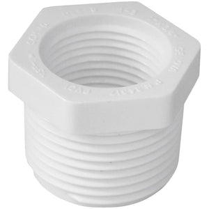For Schedule 40 cold water pressure pipe. Reducing bushing inserts into threaded fitting socket to reduce to smaller threaded opening.